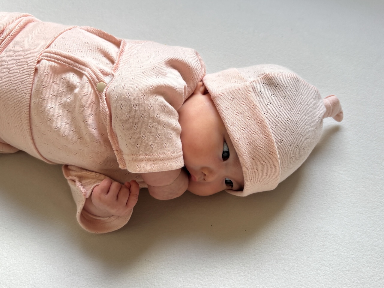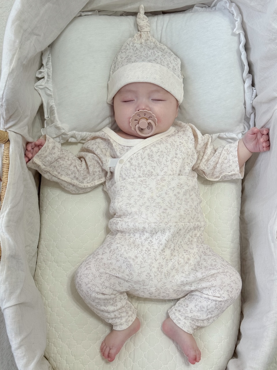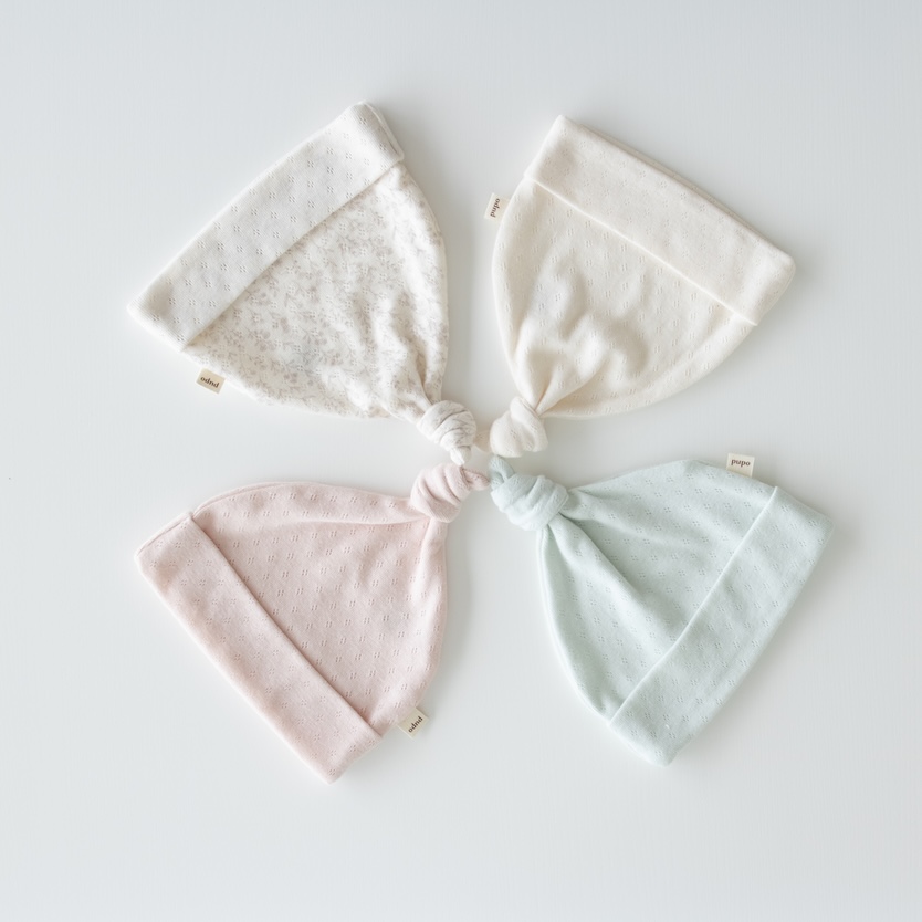 採用100%親膚的日本棉製作,親膚柔軟,舒適透氣。布料具備優異的吸水性、透氣性與彈性,質地蓬鬆柔軟,穿著舒適。可依頭圍調整綁結鬆緊。