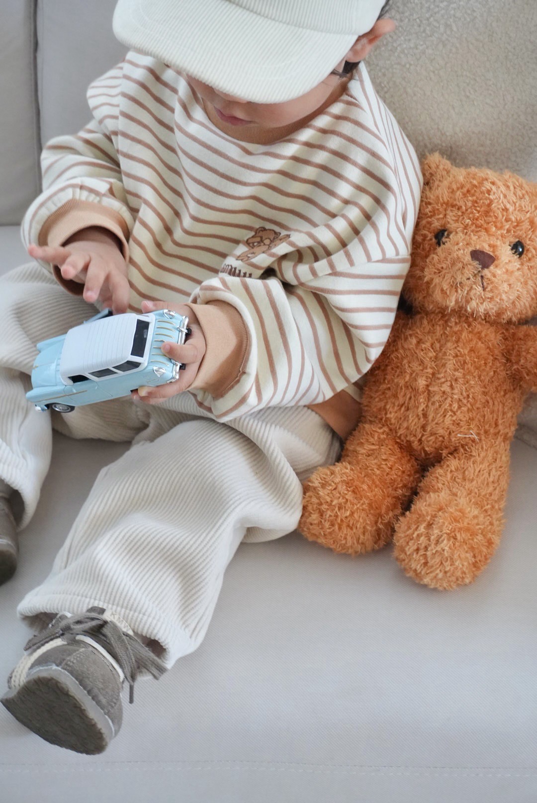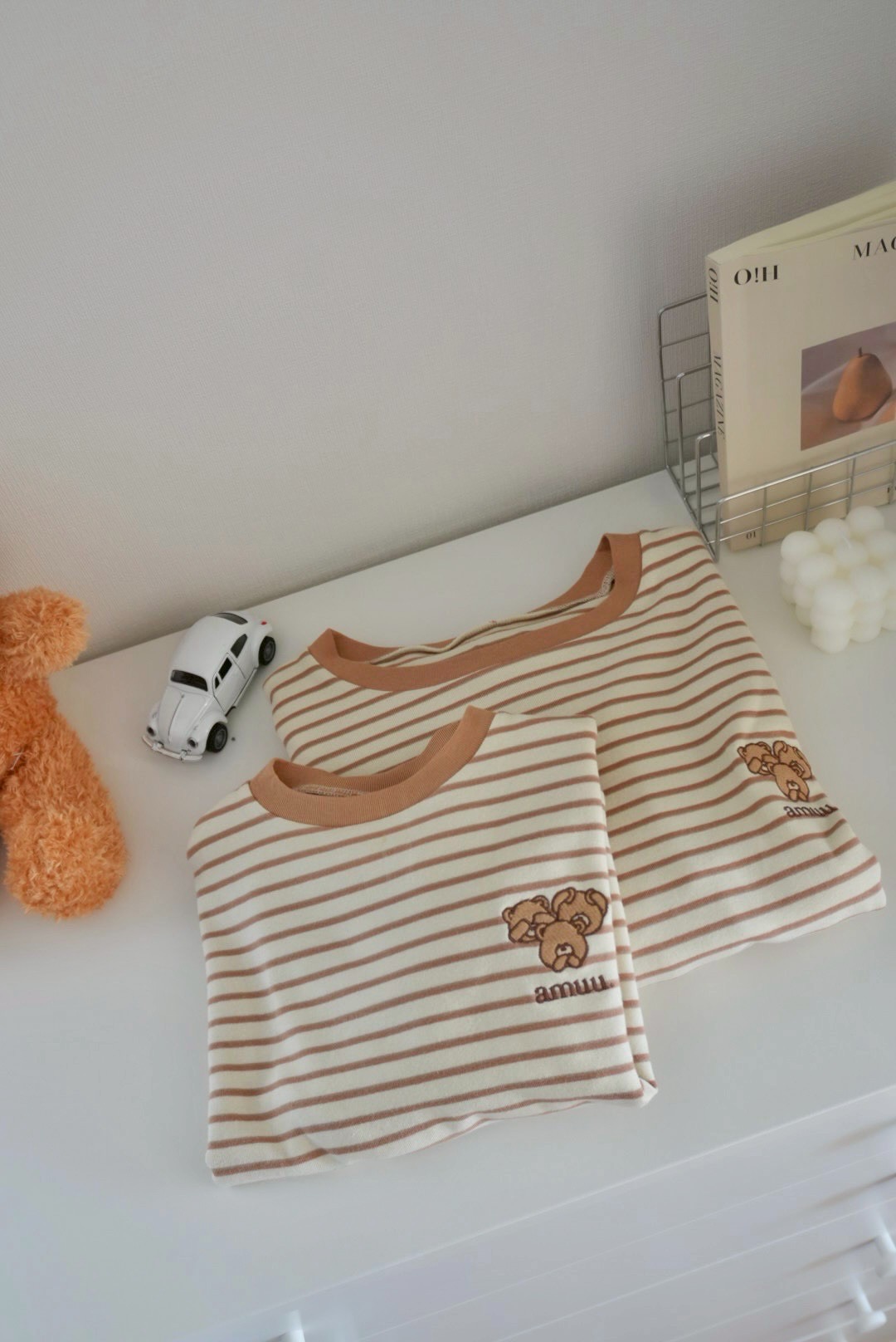 【預購】ammu | hey! kuma 條紋刺繡包屁衣&上衣 (蜂蜜千層) *new!!