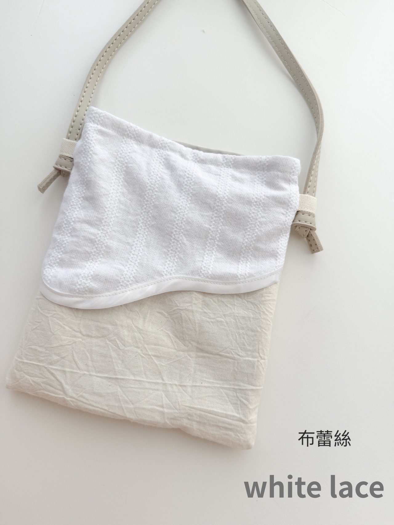 v 可調節式皮革背帶,透過打結方式調整長度
